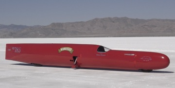 The perpendiculars of the side car wheel and the streamliner are both 90 degrees from the salt surface.